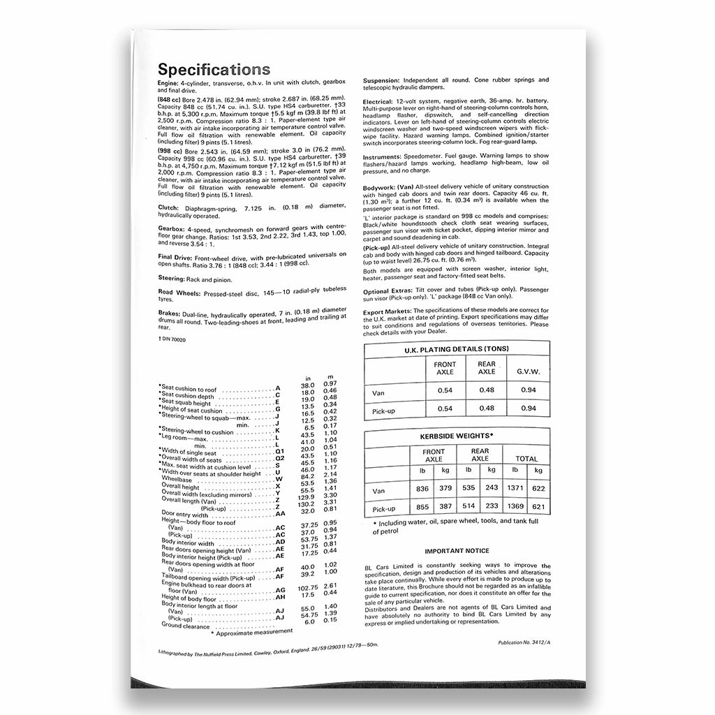 Discover the charm of the iconic Mini with this vintage sales brochure from 1979. The brochure showcases the versatility of the Mini Van and Pickup, highlighting their features and capabilities for various needs. The brochure is a perfect addition to any Mini enthusiast's collection, providing a glimpse into the history of this beloved classic car. This brochure is a must-have for anyone interested in vintage car literature, particularly those interested in the Mini. With its detailed descriptions and beautiful illustrations, it is a testament to the quality and craftsmanship of this British classic. Add this rare find to your collection today and experience the nostalgia of a bygone era.